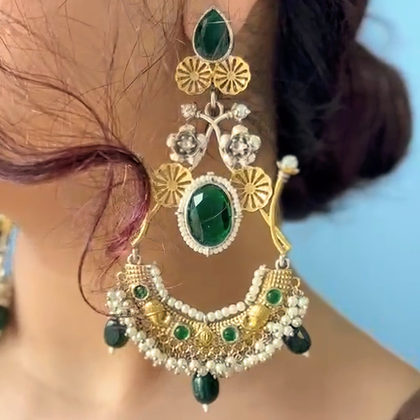 Arshiya Unique and Elegant Traditional Dual Tone Oxidised Green Stone Earrings