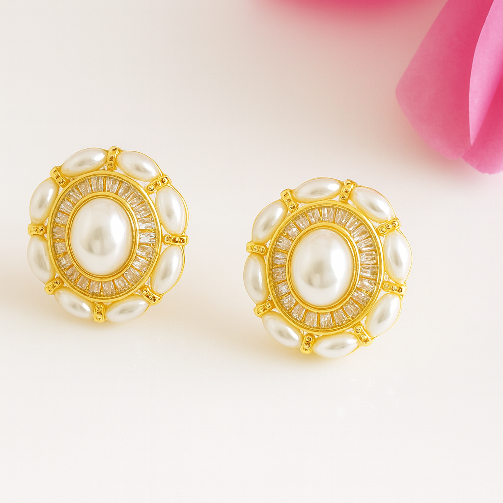 Vintage-Inspired Pearl & Gold Statement Stud Earrings