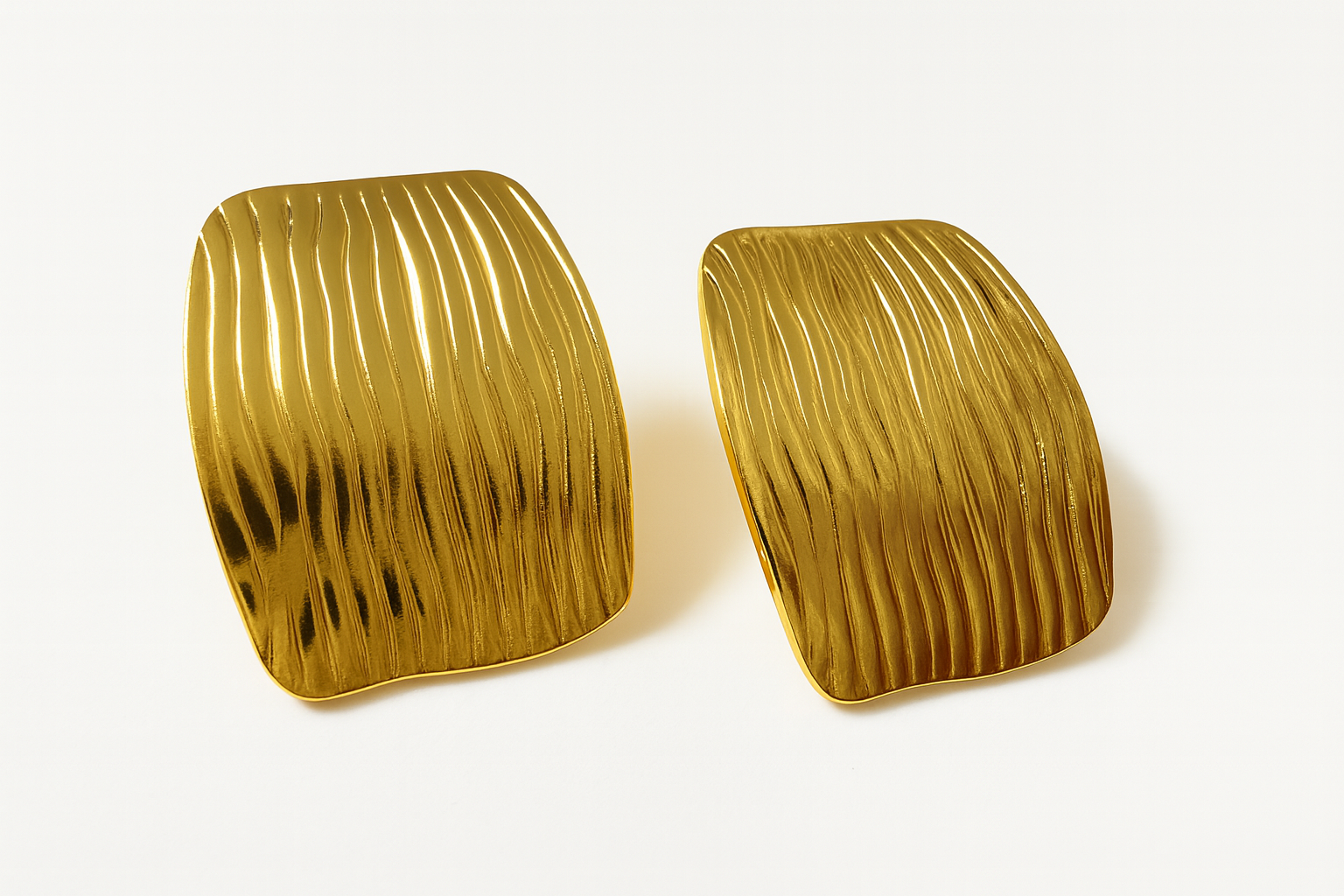 Add a touch of bold elegance with these Gold Plated Textured Rectangular Earrings. With their unique ripple-like texture and high-polish finish, these earrings make a powerful style statement while remaining lightweight and comfortable.