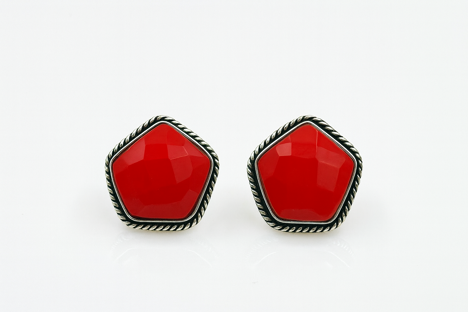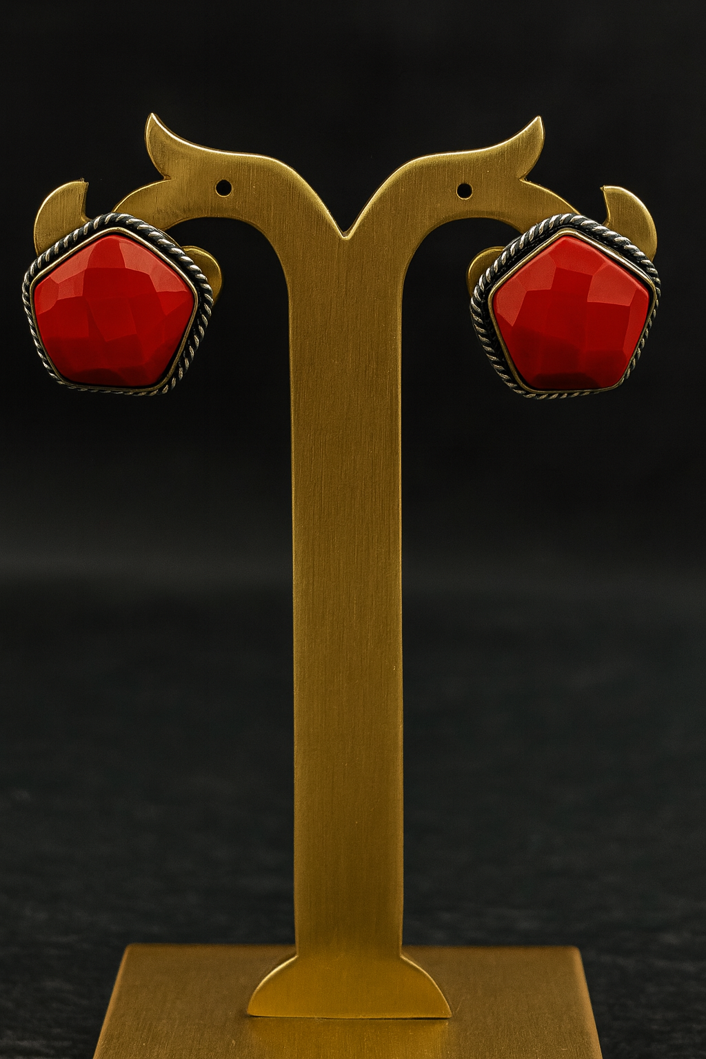 Add a pop of vibrant elegance to your look with these red stone stud earrings. Featuring faceted red stones set in a silver-tone twisted border, these earrings combine timeless craftsmanship with bold modern style — perfect for casual wear or festive occasions.