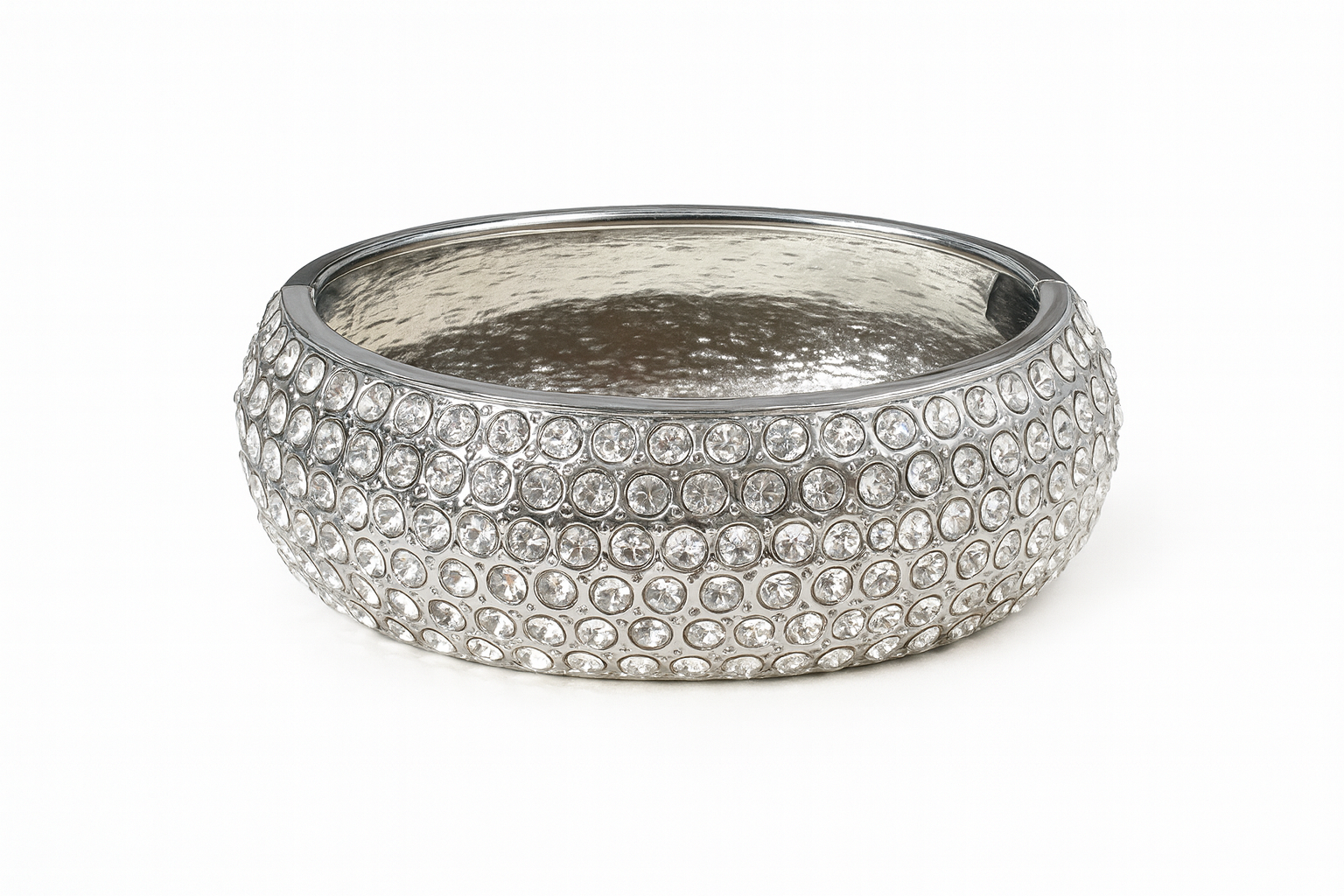 - Design: Wide bangle with full crystal-studded finish