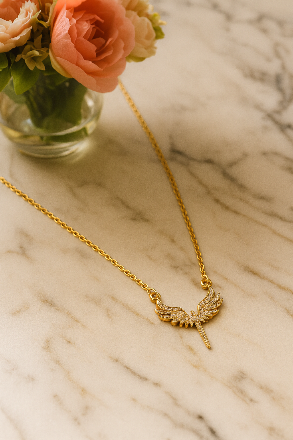 Elevate your style with this angel wing pendant necklace, crafted in premium stainless steel for long-lasting shine and durability. Accented with sparkling cubic zirconia crystals, the design symbolizes strength, grace, and timeless elegance—perfect for both everyday wear and special occasions.
